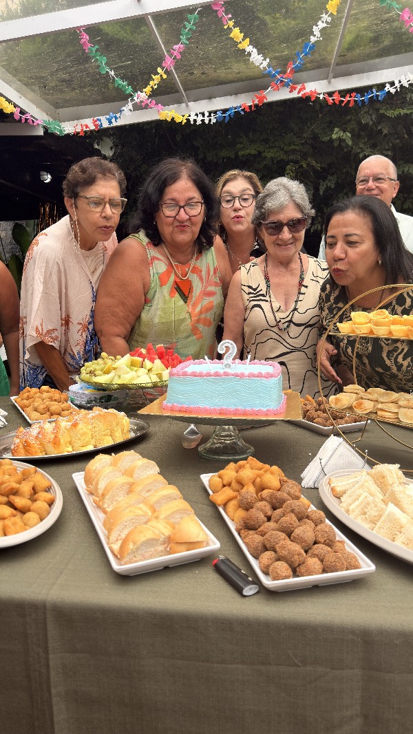 Dando continuidade, todos cantaram parabéns para os aniversariantes do mês e aproveitaram o café. Ao som de marchinhas de Carnaval, o ambiente ficou ainda mais descontraído, resgatando a tradição e o clima festivo característicos desta época do ano.