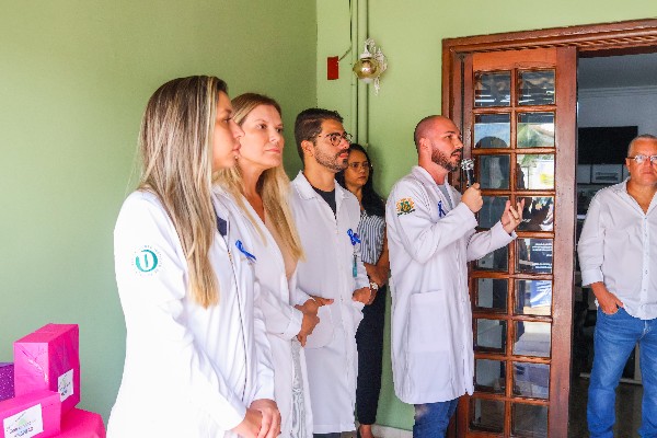 Na sequência, especialistas da área da saúde conduziram atividades relacionadas ao Março Azul. O doutor Paulo Rios iniciou a apresentação destacando a importância da conscientização, especialmente entre o público idoso, ressaltando que a prevenção é fundamental para salvar vidas. Ele também alertou que o câncer de intestino é o terceiro tipo de tumor mais letal no Brasil, responsável por mais de 20 mil mortes anuais.