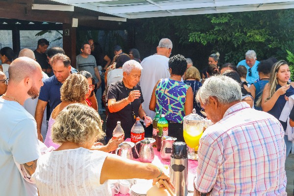 Após as palestras, todos se serviram do café da manhã, em um momento de descontração, reencontros e conversas entre os aposentados e pensionistas, fortalecendo os laços e promovendo um ambiente acolhedor e animado . Durante esse momento, o doutor Paulo Rios abriu espaço para perguntas, permitindo que os aposentados esclarecessem suas dúvidas acerca do câncer colorretal.