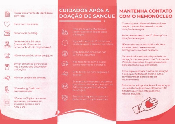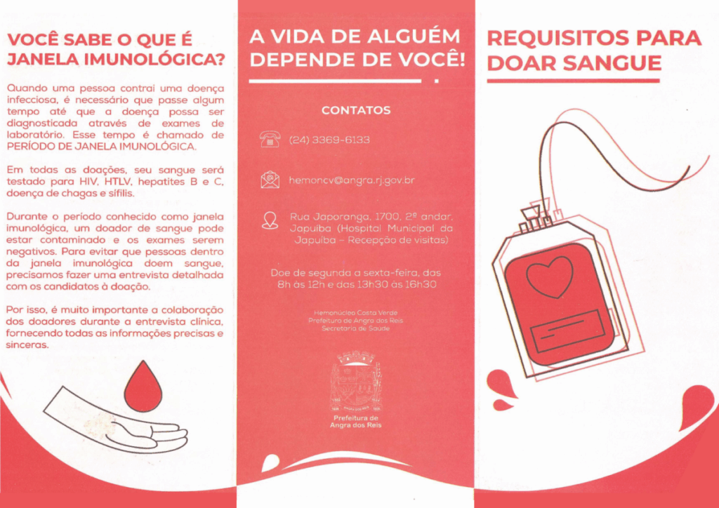 As doações podem ser feitas no Hemonúcleo Costa Verde, localizado na Rua Japoranga, nº 1.700, bairro Japuíba, dentro do Hospital Municipal da Japuíba (HMJ).