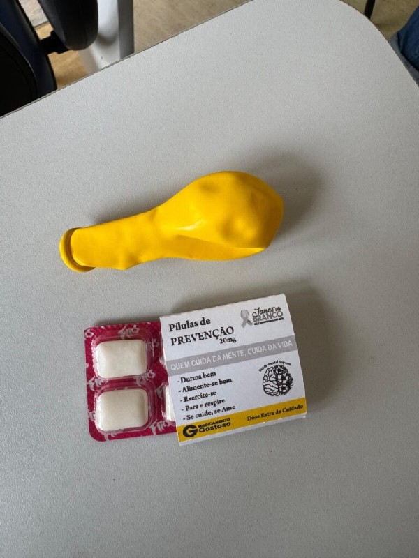 Contamos também com uma dinâmica, na qual cada participante recebeu um balão acompanhado de um brinde, seguido de um convite à reflexão sobre medos e aspectos negativos que gostaria de eliminar de sua vida enquanto enche o balão. Em seguida, todos estouraram seus balões, simbolizando o alívio e a superação desses desafios.