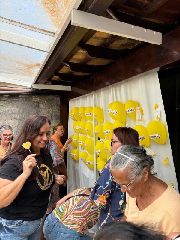 Além disso, os participantes participaram de uma dinâmica interativa, onde estouraram balões que representavam sentimentos negativos. Cada balão continha uma mensagem reflexiva relacionada ao sentimento, promovendo uma discussão sobre a importância de reconhecer e lidar com emoções